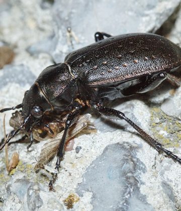 Красотел-исследователь (лат. Calosoma investigator) — крупный жук из семейства жужелиц. Жук длиной 16—27 мм. Окраска чёрная, верхняя сторона часто бронзовая или зеленоватая. Между рядами крупных...
